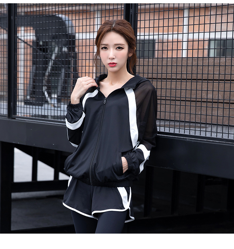ヨガジャケット+短パンツ付きレギンス 羽織り ポケット付き メッシュ 長袖 前開き 着圧 美脚 ヨガタイツ 脚やせ おしゃれ 通気性 快適 ゆったり ハイウエスト 吸汗速乾 大きいサイズ きれいめ 柄 スポーツ フィットネス ジム ランニング M-3XL